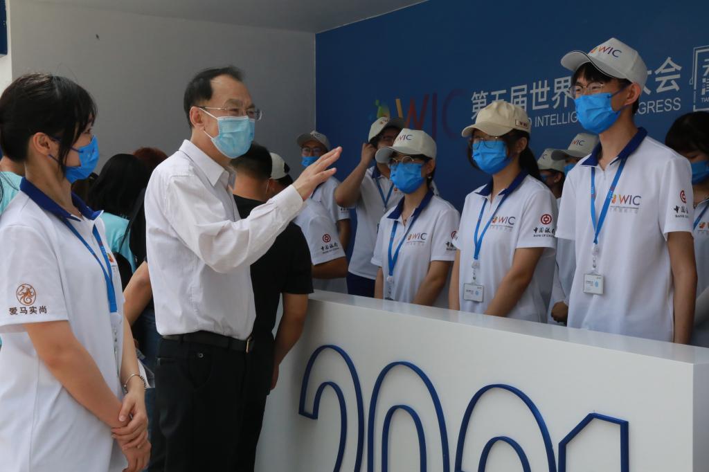王延文来到登录大厅、新区展位、前广场及外场等志愿服务岗位,详细询问了志愿者的工作内容、上岗时间以及在岗期间的餐饮、交通、安全等方面的后勤保障情况。王延文对我校志愿者积极参与世界智能大会的志愿行动和奉献精神表示赞赏和肯定,勉励志愿者要珍惜这次志愿服务的机会,厚植爱党爱国爱农爱校情怀,思源奋进,用实际行动诠释志愿精神,立大志、明大德、成大才、担大任,贡献青春力量,庆祝中国共产党成立100周年!
