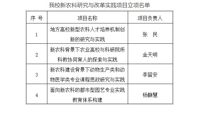 我校4个项目获批教育部新农科研究与改革实践项目