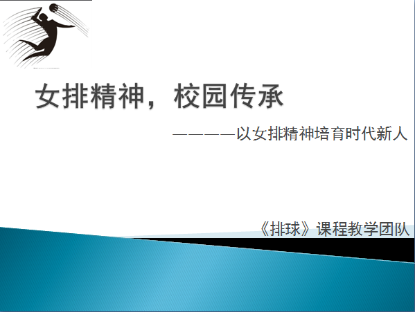 《排球》课程是我校公共体育课程的一个组成部分。排球教学团队通过深入挖掘思政元素,创新课程实施方式,把中国“女排精神”渗透于教育教学之中,从培养目标、教学方法、教学内容以及考核评价等方面引导学生们在体育活动中感悟爱国、合作、奉献等精神,健全人格、塑造品质、提升素养,培养德智体美劳全面发展的社会主义建设者和接班人。