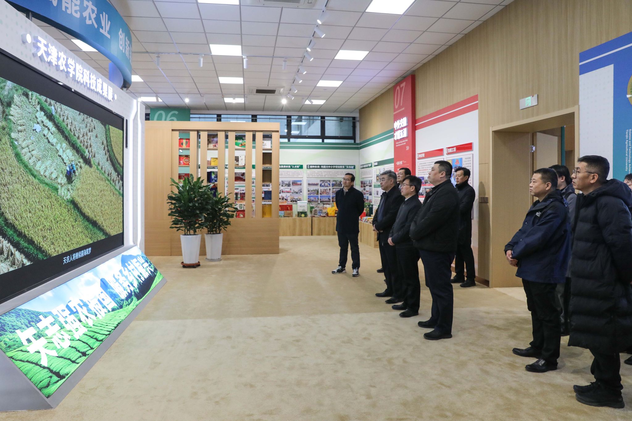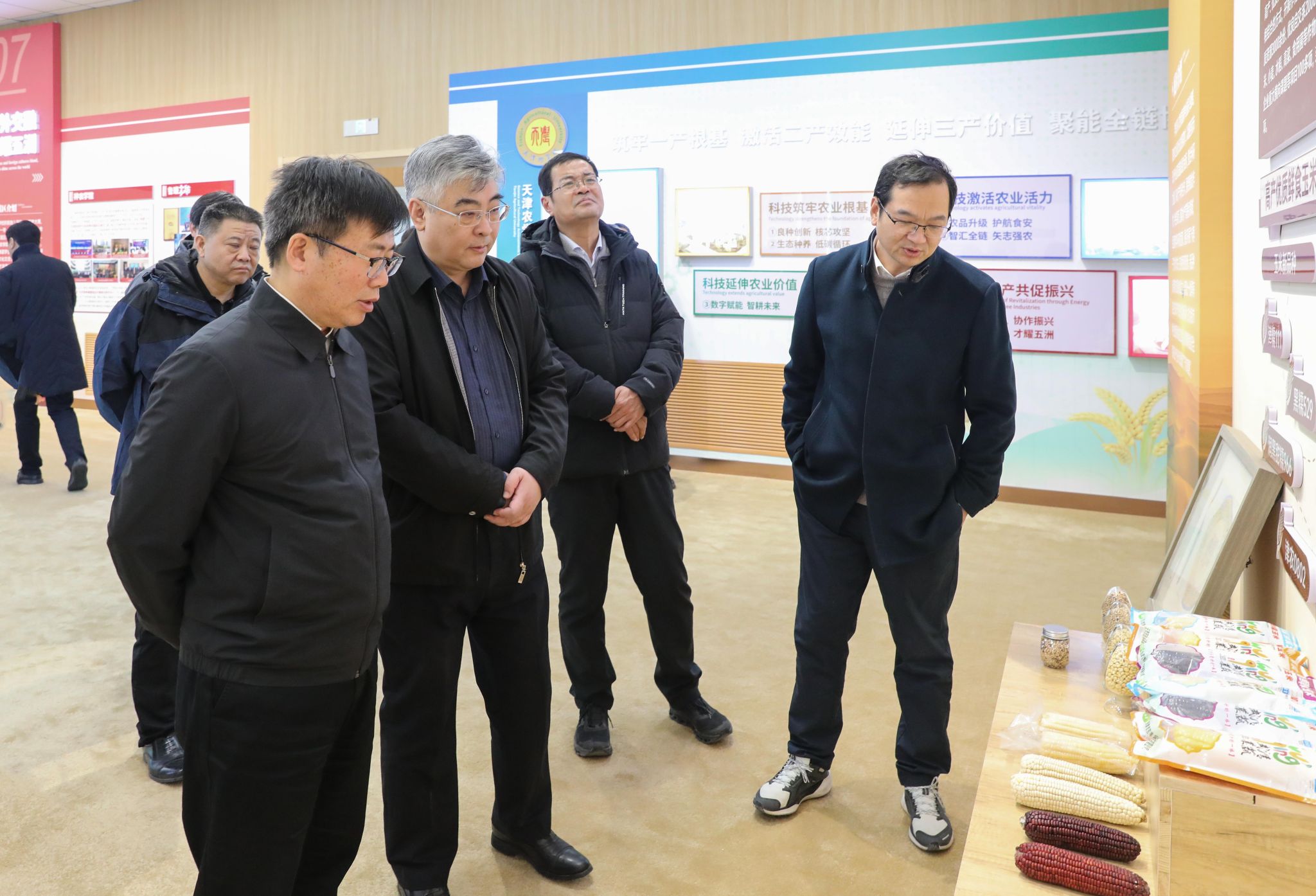 会前,焦文胜一行参观了我校科技成果展厅以及农业农村部智慧养殖重点实验室、水稻分子遗传育种实验室和玉米分子设计育种研究组等科研平台。
