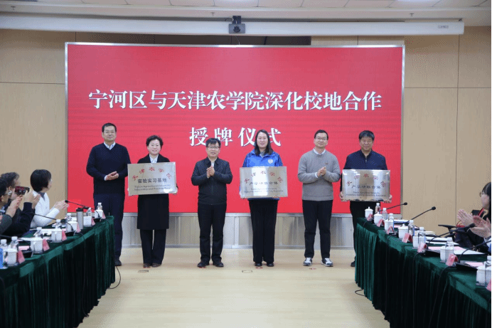 座谈会上,金危危、惠冰分别介绍了双方围绕产业升级、农文旅融合发展等领域开展对接的成效。李鑫、金危危、王繁珍为农发集团、天津市换新水产良种场、天津市优质农产品开发示范中心授牌。白凤祥、惠冰为我校组织部、科技处代表颁发“招才引智大使”聘书。